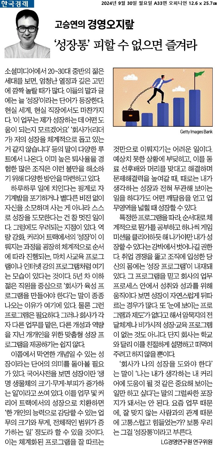 ① 소셜미디어에서 20~30대 중반의 젊은 세대를 보면, 엄청난 열정과 깊은 고민에 깜짝 놀랄 때가 많다. 이들의 말과 글에는 늘 ‘성장’이라는 단어가 등장한다.