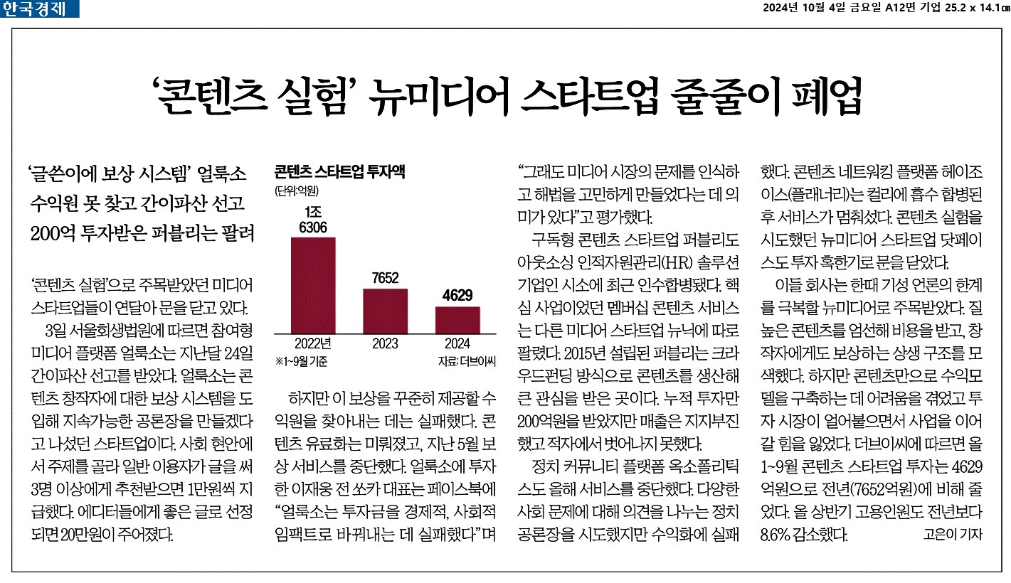 ① ‘콘텐츠 실험’으로 주목받았던 미디어 스타트업들이 연달아 문을 닫고 있다.