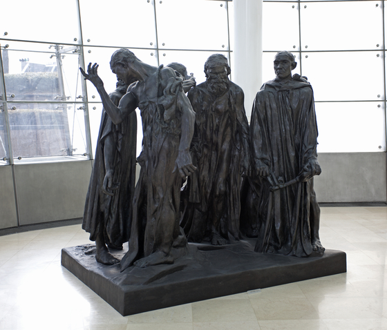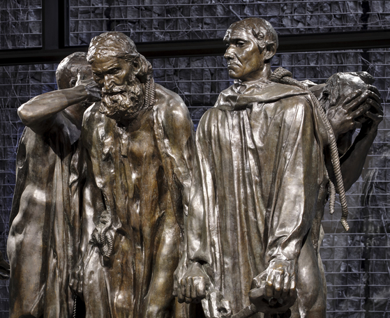 ③ 14세기 시민들이다. 백년전쟁 당시 프랑스의 칼레를 점령한 영국 왕은 항복의 징표로 시민 대표 6명을 내놓으라 요구한다. 1년 가까이 똘똘 뭉쳐 저항하던 시민들은 혼란에 빠졌다. 누가 죽고 누가 살 것인가. 부자가 먼저 손을 들자 시민·법률가가 동참했다. 가진 자가 먼저 희생하는 의무, ‘노블레스 오블리주’의 상징이 된 이야기다.