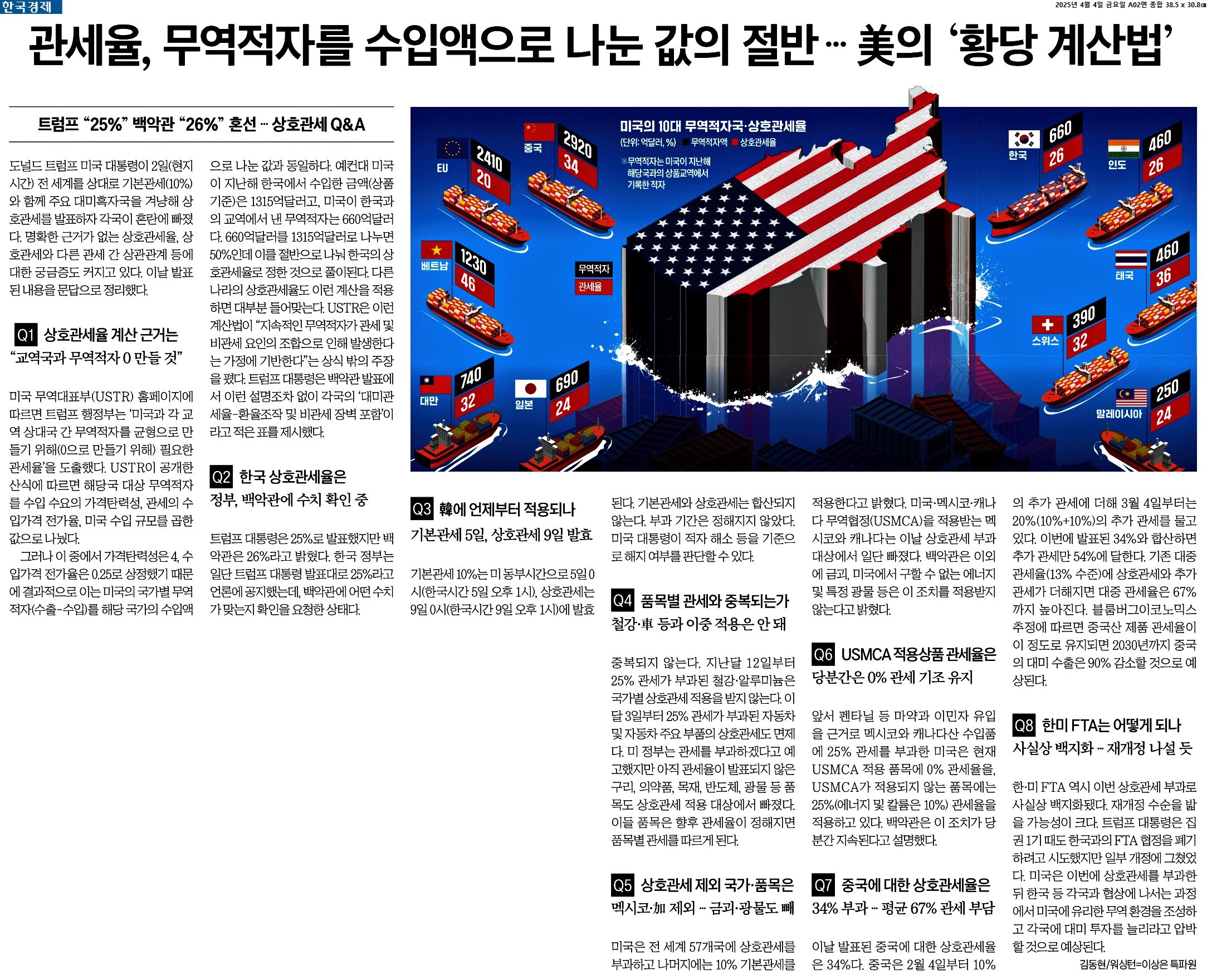 한·미 FTA 역시 이번 상호관세 부과로 사실상 백지화됐다.