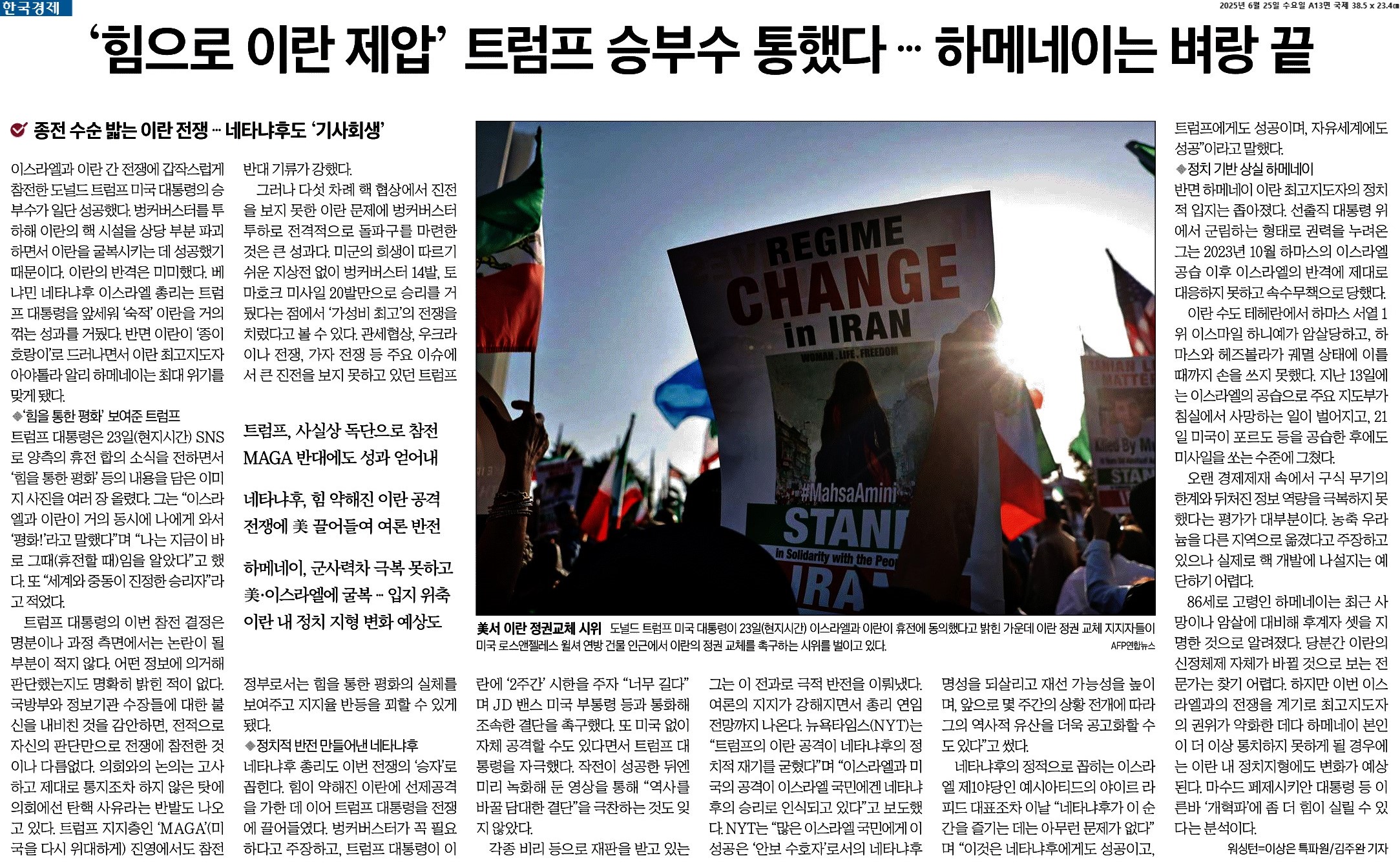 | "휴전 바라지만, 때론 싸움도 필요" 뒷짐 진 미국 (0) | 2025.06.27 |