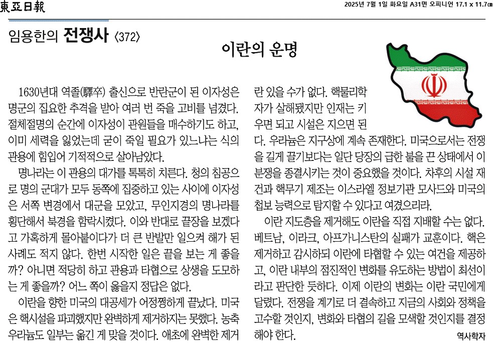 ⑤ 이제 이란의 변화는 이란 국민에게 달렸다. 전쟁을 계기로 더 결속하고 지금의 사회와 정책을 고수할 것인지, 변화와 타협의 길을 모색할 것인지를 결정해야 한다.