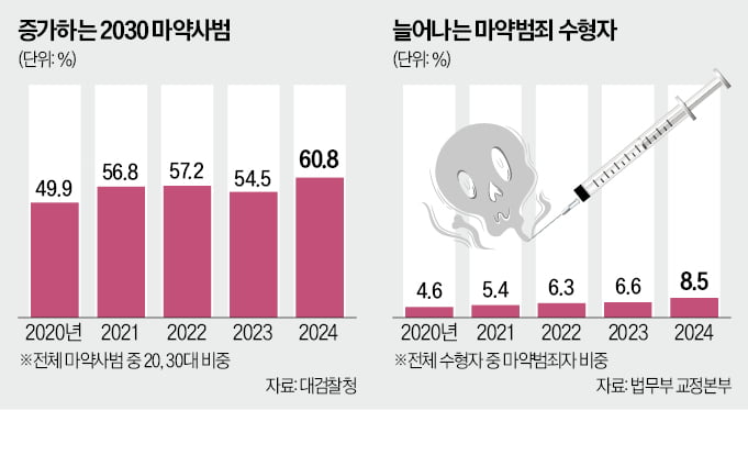 ① 2030 청년들이 텔레그램, 다크웹 등 익명을 기반으로 한 ‘온라인 마약 유통망’에 급속히 유입되고 있다. 추적이 어려운 암호화폐와 익명 온라인 플랫폼을 통한 마약 범죄가 확산하면서 교정시설 내 마약사범 비중도 꾸준히 증가하고 있다.