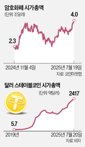 ① “우리는 세계 금융시장에서 달러 지배력을 공고히 하는 거대한 발걸음(giant step)을 내디뎠다.” 도널드 트럼프 미국 대통령이 지난 18일 백악관에서 ‘지니어스법’(GENIUS Act)에 서명한 직후 한 말이다. 지니어스법은 달러 등 법정화폐 가치와 1 대 1로 연동하는 스테이블코인을 제도권 내에서 인정한 법이다. 트럼프 대통령이 이 법에 최종 서명하면서 스테이블코인은 미국 금융시장에서 공식적인 법적 지위를 갖게 됐다. 트럼프 대통령은 “(이 법의 통과는) 인터넷 탄생 이후 금융 기술에서 일어난 가장 위대한 혁명일 수 있다”고 강조했다.