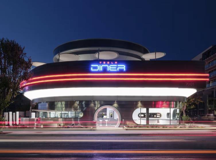 ① 미국 전기차 업체 테슬라가 22일(현지 시간)부터 캘리포니아주 로스앤젤레스 도심에 식당과 충전소를 접목한 휴게소 형태의 복합시설 ‘다이너(Diner)’ 영업을 시작했다. 향후 1주일간 24시간 내내 운영된다.