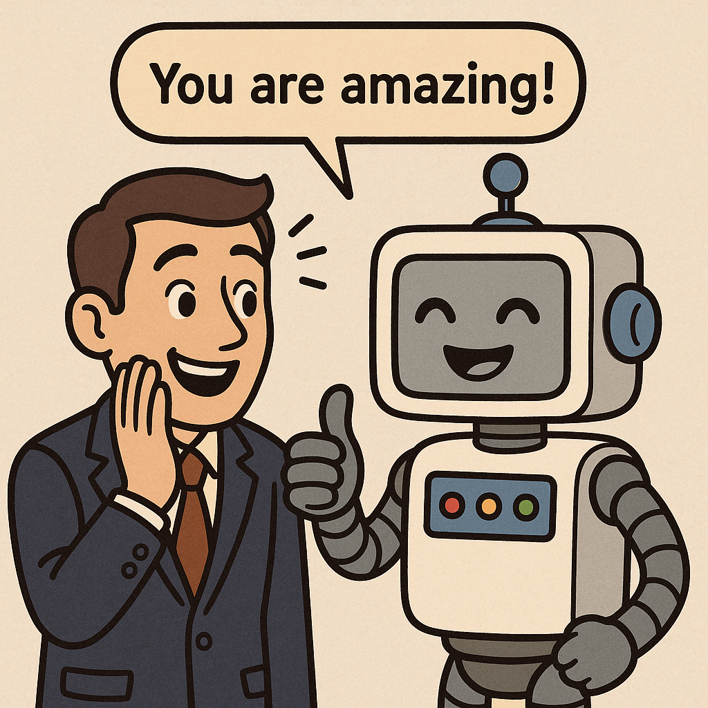 ⑤ 챗GPT에 따르면, 아부하는 AI는 “즉각적으로는 이용자의 만족도를 높일 수 있으나 의학적 조언이나 여타 중요한 의사결정 상황에서 위험한 결과를 초래할 수 있다. 사용자의 확증편향을 강화하고 잘못된 신념을 공고하게 만들 가능성이 있다”고 한다. 이용자가 사슴을 가리켜 말이라고 하면, 그건 말이 아니고 사슴이라고 바로잡아 줘야 한다는 것이다. 이것이 과연 AI에만 해당되는 원칙일까? 다행히 앞서 언급한 아첨꾼 챗GPT는 회사가 업데이트를 취소하고 이전 버전으로 되돌리면서 무대 뒤로 사라졌다.