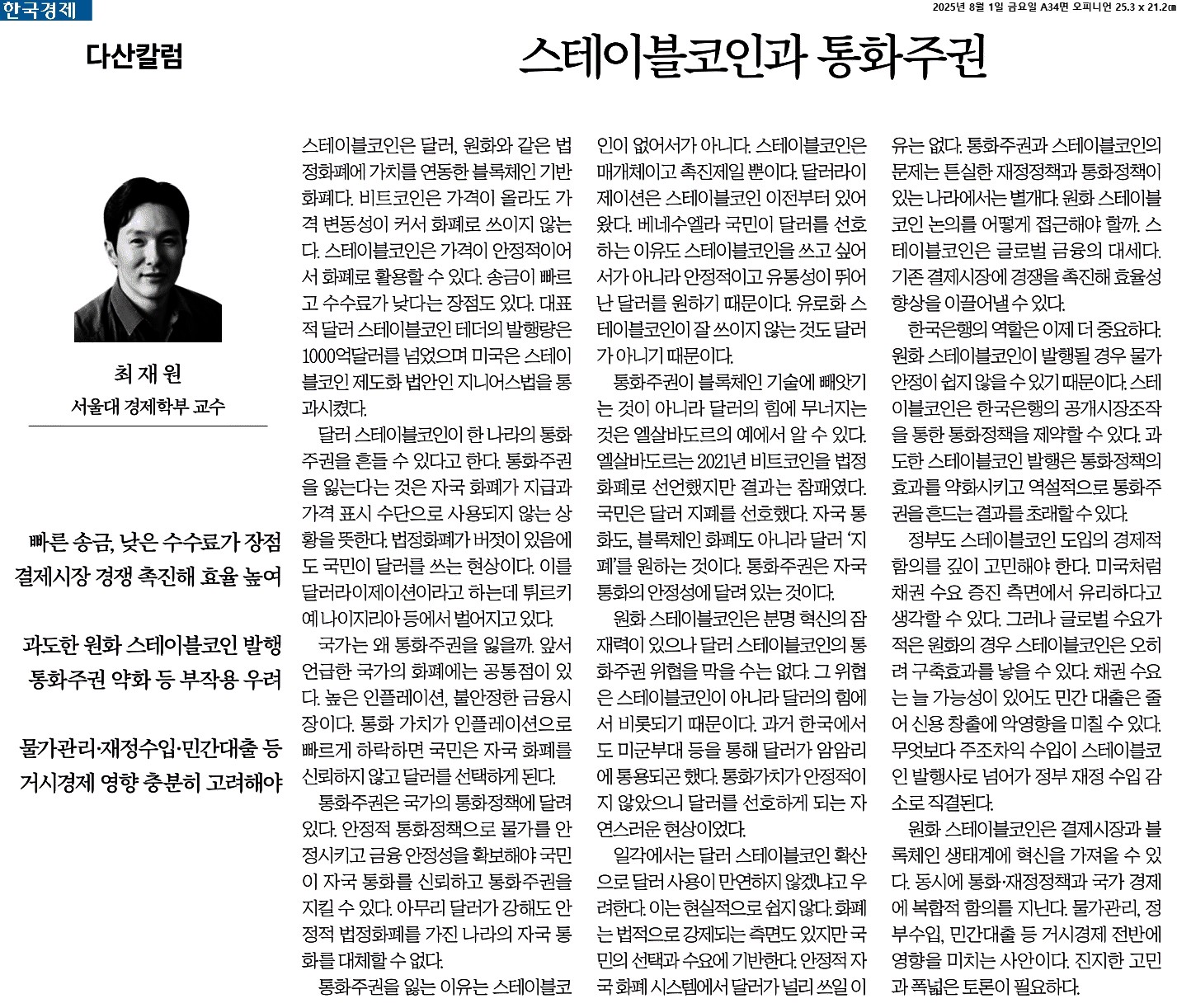 | 홍콩, 스테이블코인 제도권 편입 (8) | 2025.08.12 |