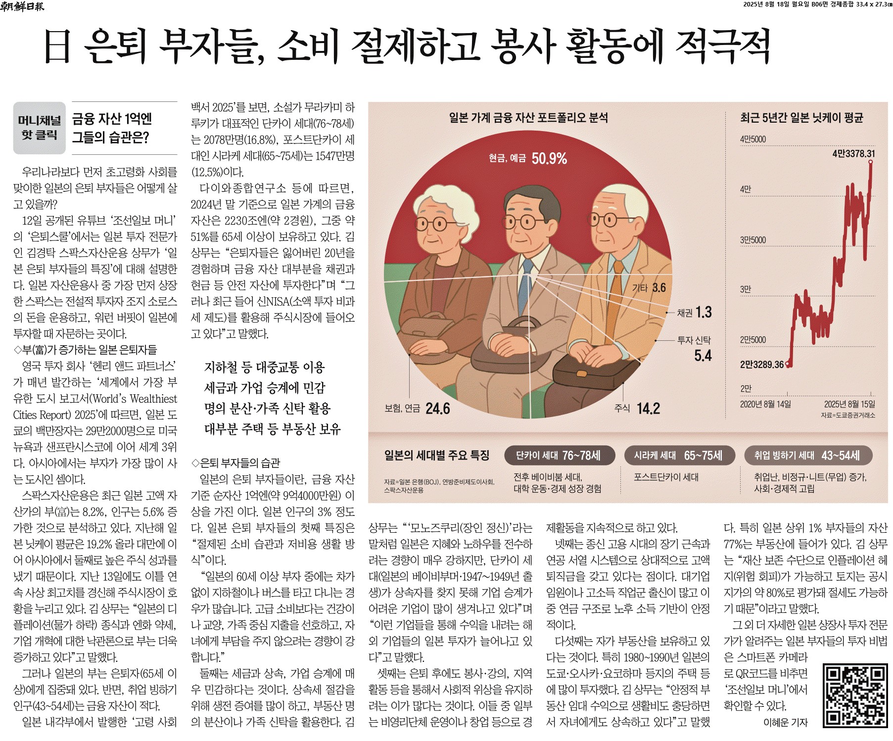 ③ “일본의 60세 이상 부자 중에는 차가 없이 지하철이나 버스를 타고 다니는 경우가 많습니다. 고급 소비보다는 건강이나 교양, 가족 중심 지출을 선호하고, 자녀에게 부담을 주지 않으려는 경향이 강합니다.”
