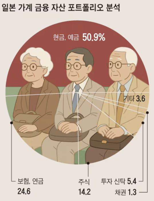 ② 그러나 일본의 부는 은퇴자(65세 이상)에게 집중돼 있다. 반면, 취업 빙하기 인구(43~54세)는 금융 자산이 적다. “은퇴자들은 잃어버린 20년을 경험하며 금융 자산 대부분을 채권과 현금 등 안전 자산에 투자한다”며 “그러나 최근 들어 신NISA(소액 투자 비과세 제도)를 활용해 주식시장에 들어오고 있다”