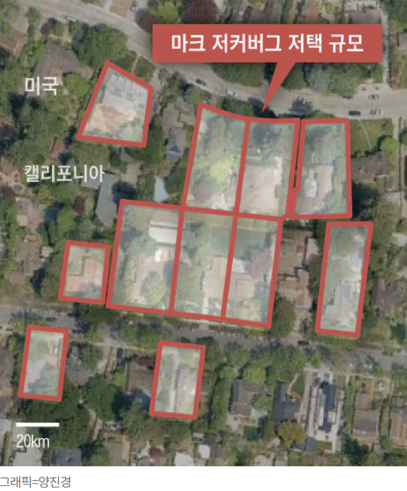 ① 이 집들은 ‘테크 억만장자’인 마크 저커버그 메타 CEO 소유다. 저커버그 CEO는 2011년부터 올해까지 이 일대 집 11채를 1억1000만달러(약 1400억원)에 매입해 공사를 벌였다. 뉴욕포스트 등 외신에 따르면 이 중 5채는 하나로 합쳐 자신과 가족이 사용하고, 내부에는 게스트하우스·정원·수영장 등 호화로운 시설이 있다. 또 대저택 아래엔 벙커 같은 대규모 지하 공간이 조성돼 있다. 2m 높이로 제작된 저커버그의 아내 챈의 동상이 세워진 곳이기도 하다.