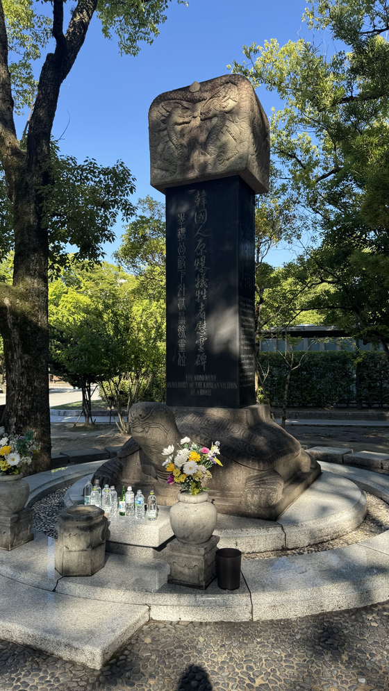 ③ 공원에는 한국인 희생자 위령비도 있다. 당시 두 지역의 한국인 희생자는 전체의 5분의 1 정도로 추산된다. 히로시마의 한국인 위령비는 1970년에 세워졌을 무렵엔 공원 안에 들어오지도 못했다가 1999년 공원 안으로 옮겨졌다.