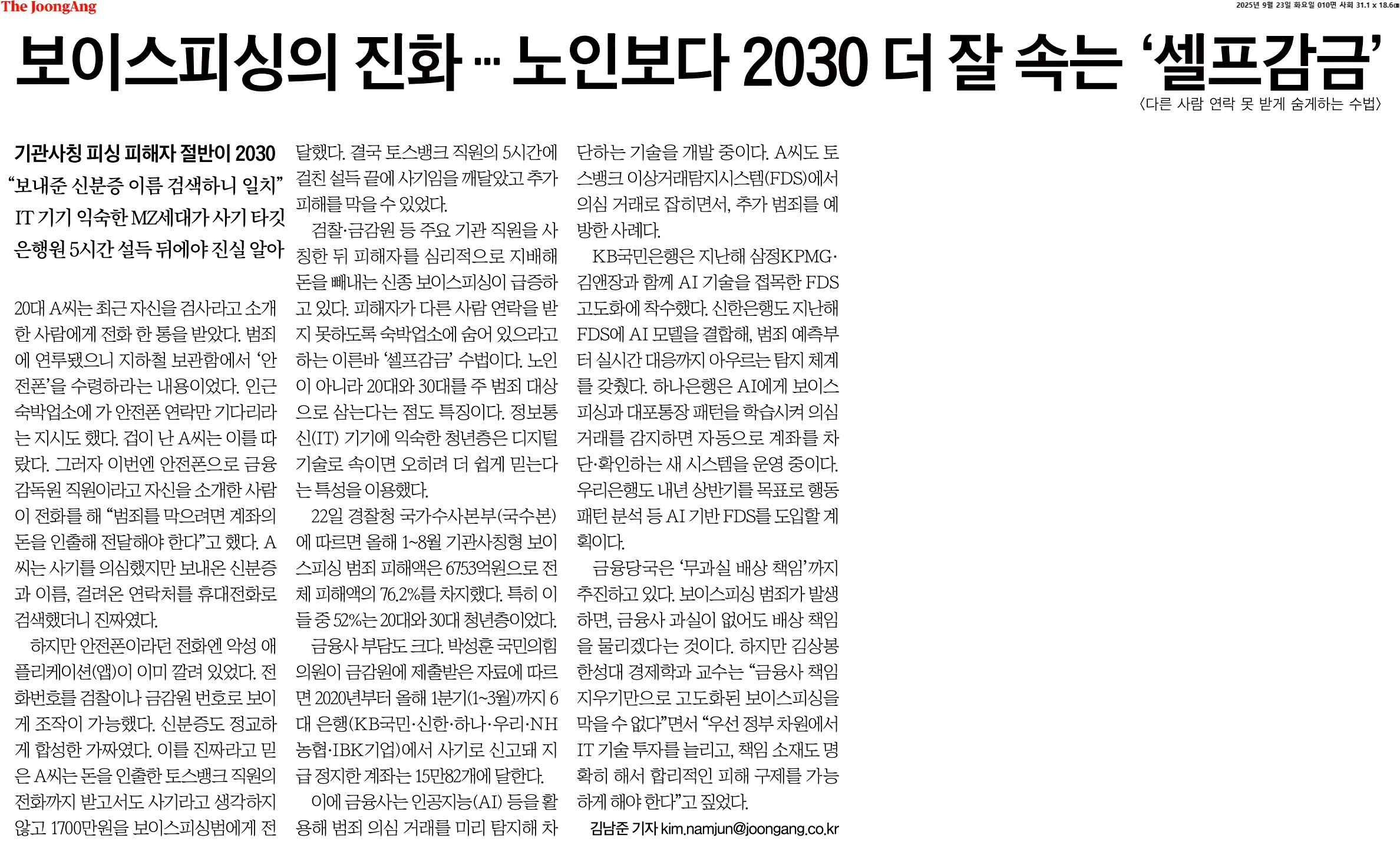 ① 검찰·금감원 등 주요 기관 직원을 사칭한 뒤 피해자를 심리적으로 지배해 돈을 빼내는 신종 보이스피싱이 급증하고 있다. 피해자가 다른 사람 연락을 받지 못하도록 숙박업소에 숨어 있으라고 하는 이른바 ‘셀프감금’ 수법이다. 노인이 아니라 20대와 30대를 주 범죄 대상으로 삼는다는 점도 특징이다. 정보통신(IT) 기기에 익숙한 청년층은 디지털 기술로 속이면 오히려 더 쉽게 믿는다는 특성을 이용했다.
