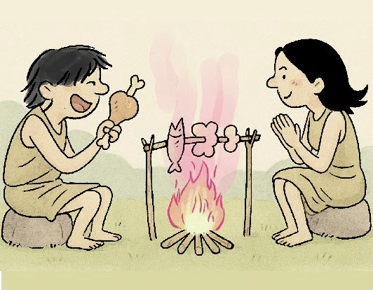② 불은 독성을 줄이거나 없애 준다. 불을 이용해 여느 동물이 먹지 못하는 고사리나 생으로는 먹기 어려운 도토리까지 섭취할 수 있게 됐다. 살균 효과 덕분에 질병에 덜 걸리고, 추위에 강해져 서식지 확장도 가능해졌다.