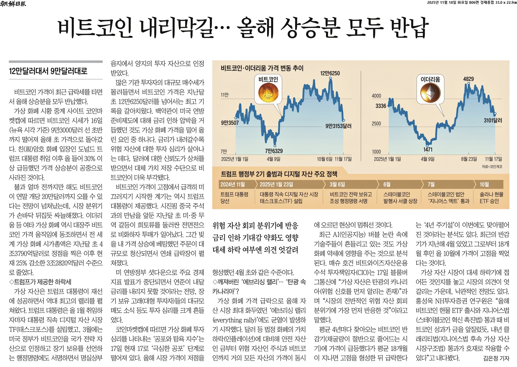 ② 가상자산은 트럼프 대통령이 재선에 성공하면서 역대 최고의 랠리를 펼쳐왔다. 트럼프 대통령은 올 1월 취임하자마자 대통령 직속 디지털 자산 시장 TF(태스크포스)를 설립했고, 3월에는 미국 정부가 비트코인을 국가 전략 자산으로 인정하고 장기 보유를 선언하는 행정명령에도 서명하면서 명실상부 음지에서 양지의 투자 자산으로 인정받았다.
