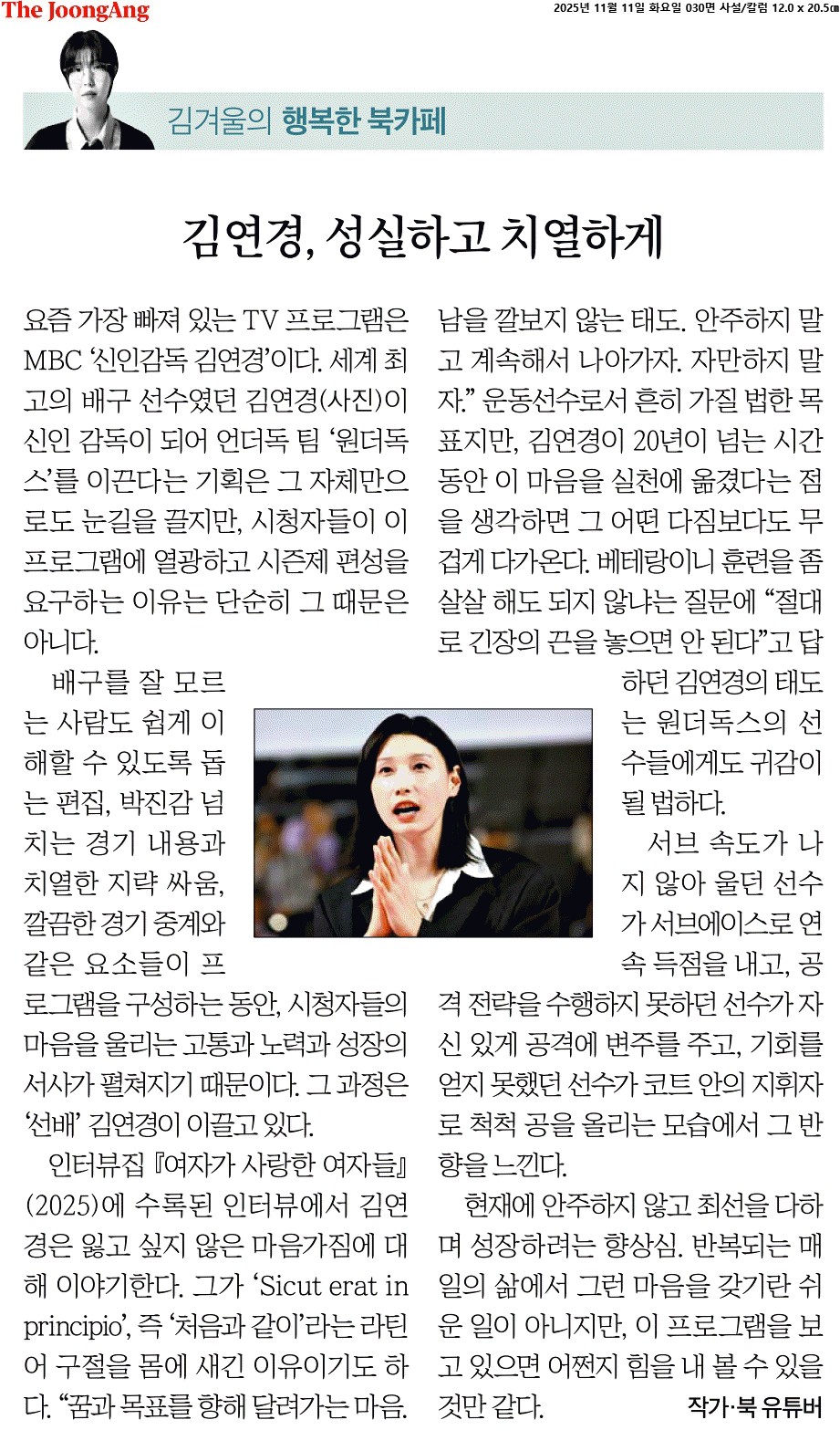 ③ 운동선수로서 흔히 가질 법한 목표지만, 김연경이 20년이 넘는 시간 동안 이 마음을 실천에 옮겼다는 점을 생각하면 그 어떤 다짐보다도 무겁게 다가온다.