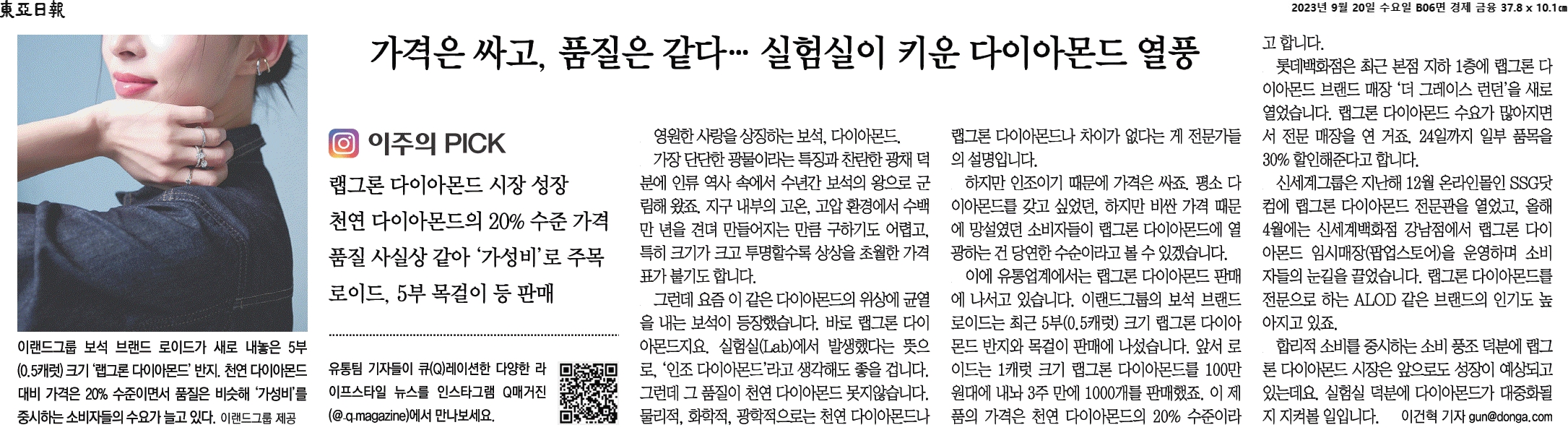 ② 요즘 이 같은 다이아몬드의 위상에 균열을 내는 "랩그론 다이아몬드"가 탄생