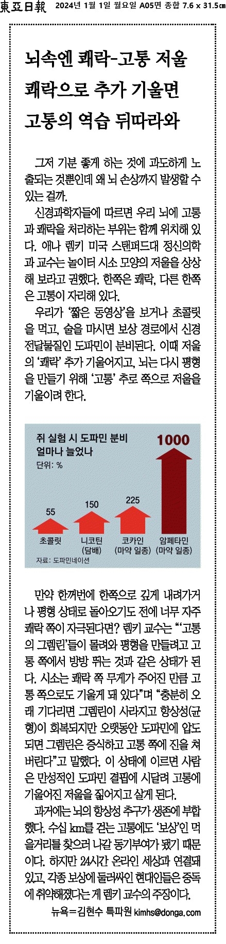 ② 애나 렘키 교수는 고통과 쾌락의 시소 모양의 저울이 있다고 비유했다.