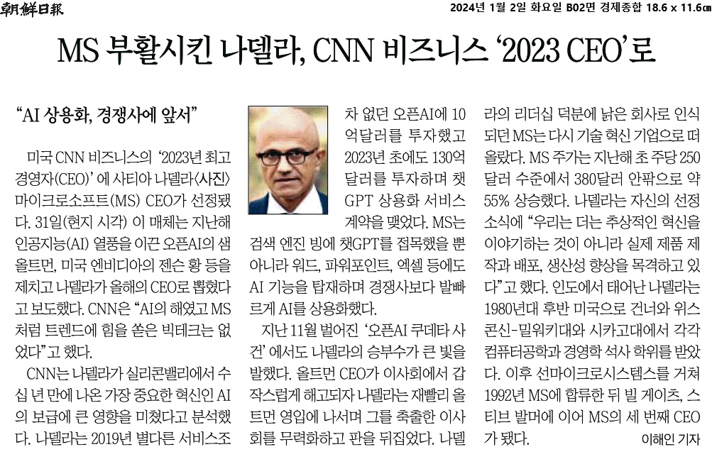 ② CNN은 "AI의 해였고 MS처럼 트렌드에 힘을 쏟은 빅테크는 없었다."고 했다.