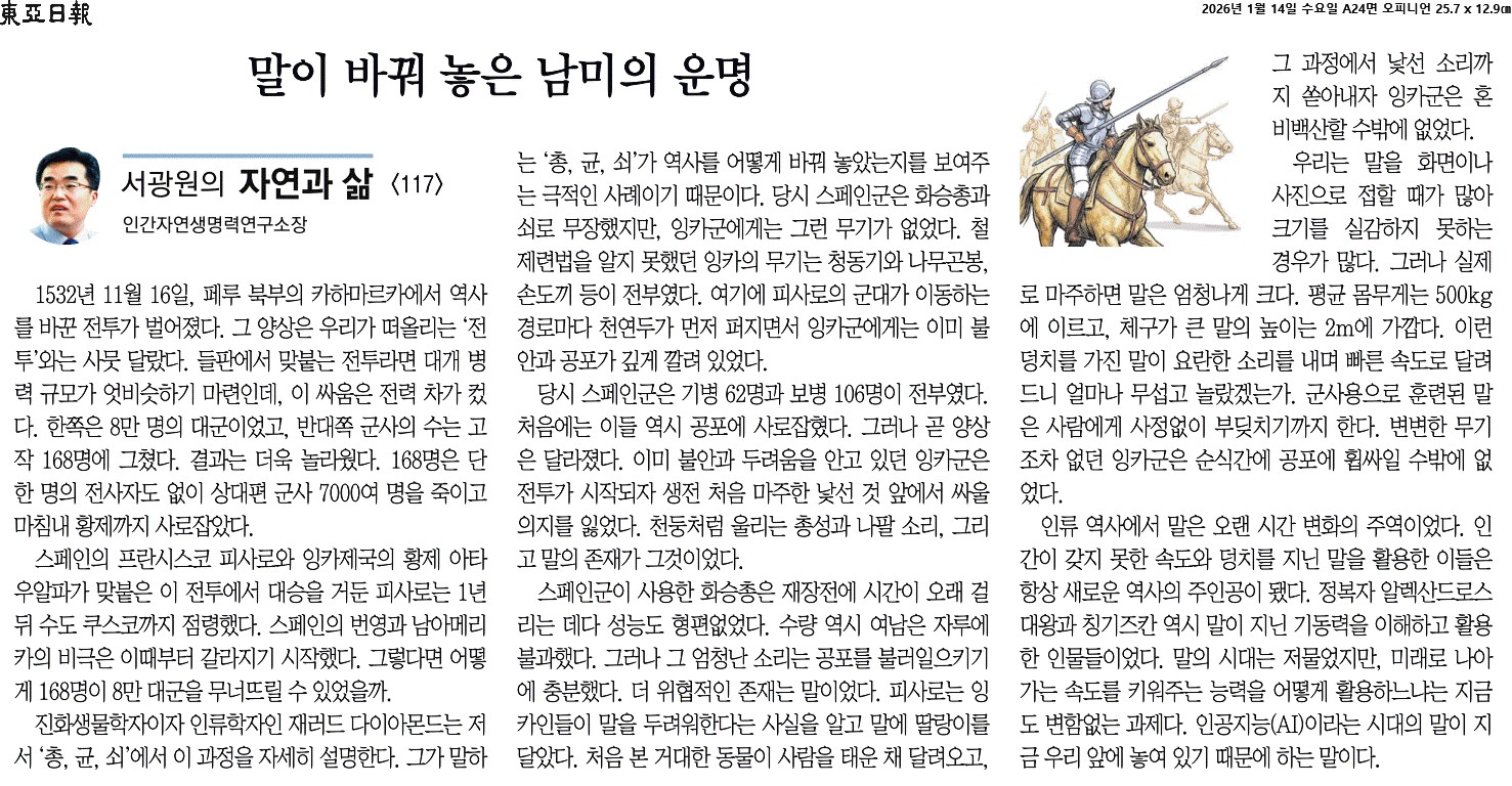 ⑤ 인류 역사에서 말은 오랜 시간 변화의 주역이었다. 인간이 갖지 못한 속도와 덩치를 지닌 말을 활용한 이들은 항상 새로운 역사의 주인공이 됐다. 정복자 알렉산드로스 대왕과 칭기즈칸 역시 말이 지닌 기동력을 이해하고 활용한 인물들이었다. 말의 시대는 저물었지만, 미래로 나아가는 속도를 키워주는 능력을 어떻게 활용하느냐는 지금도 변함없는 과제다. 인공지능(AI)이라는 시대의 말이 지금 우리 앞에 놓여 있기 때문에 하는 말이다.