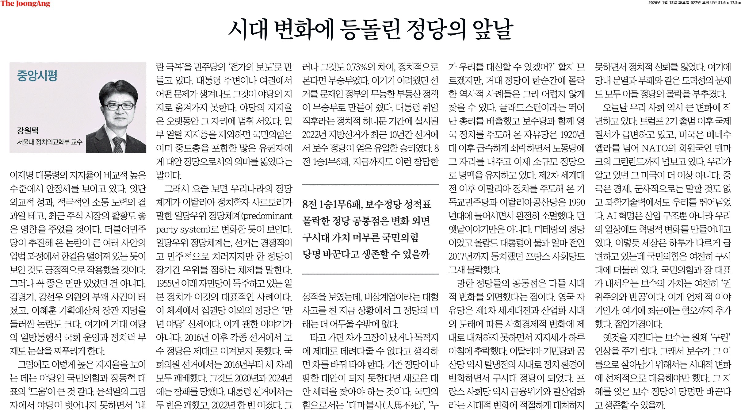 | 왜 여당 지지율은 떨어지지 않는가 (1) | 2026.01.22 |