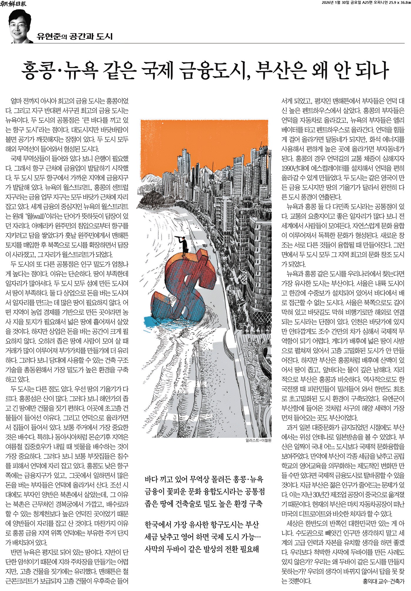 ① 얼마 전까지 아시아 최고의 금융 도시는 홍콩이었다. 그리고 지구 반대편 서구권 최고의 금융 도시는 뉴욕이다. 두 도시의 공통점은 ‘큰 바다를 끼고 있는 항구 도시’라는 점이다. 대도시지만 바닷바람이 불면 공기가 깨끗해지는 장점이 있다. 두 도시 모두 해외 무역선이 들어와서 형성된 도시다. 뉴욕은 네덜란드 상인이 들어와 ‘뉴암스테르담’이라는 도시를 만들면서 시작되었다. 훗날 영국이 점령해서 새로운 ‘요크’라는 뜻의 ‘뉴욕’으로 개명했다. 홍콩은 영국인이 중국과 아편전쟁을 통해 조차지로 빼앗으면서 시작된 도시다.