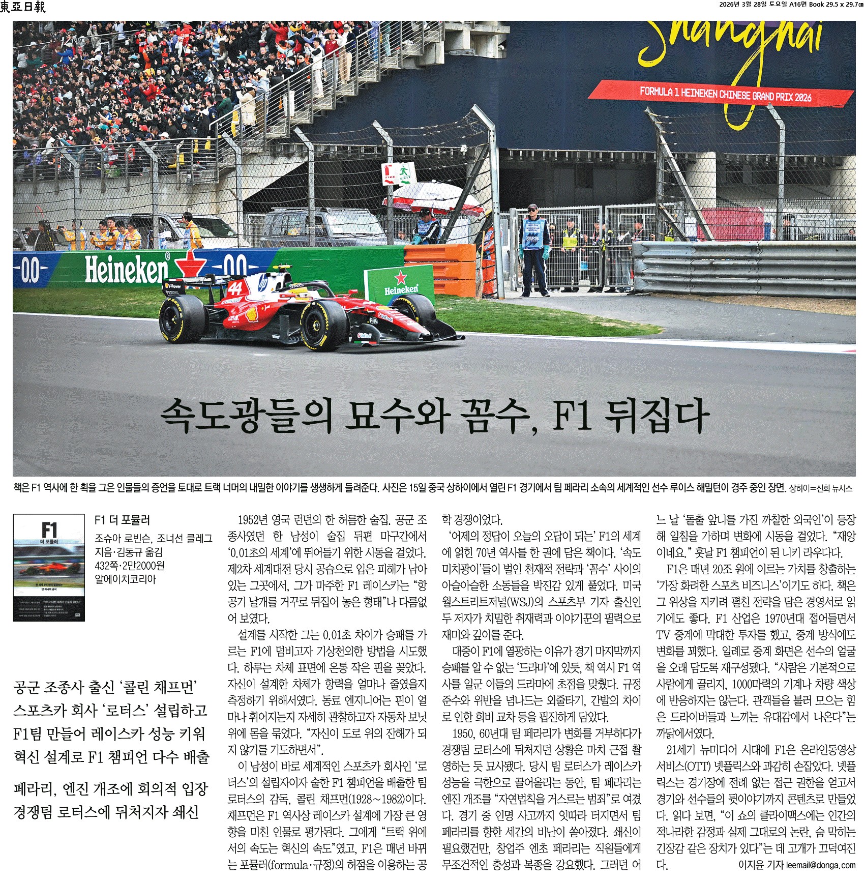 ② ‘어제의 정답이 오늘의 오답이 되는’ F1의 세계에 얽힌 70년 역사를 한 권에 담은 책이다. ‘속도 미치광이’들이 벌인 천재적 전략과 ‘꼼수’ 사이의 아슬아슬한 소동들을 박진감 있게 풀었다. 미국 월스트리트저널(WSJ)의 스포츠부 기자 출신인 두 저자가 치밀한 취재력과 이야기꾼의 필력으로 재미와 깊이를 준다.