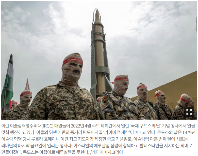 ① 미국·이스라엘과 이란 간 전쟁이 장기화되는 가운데, 이란이 ‘거대한 북한’으로 변모할 수 있다는 우려가 나오고 있다. 이란이 미국의 대규모 공격을 계기로 군사 엘리트 조직을 중심으로 한 폐쇄적 병영 국가로 전환할 가능성이 크다는 것이다.