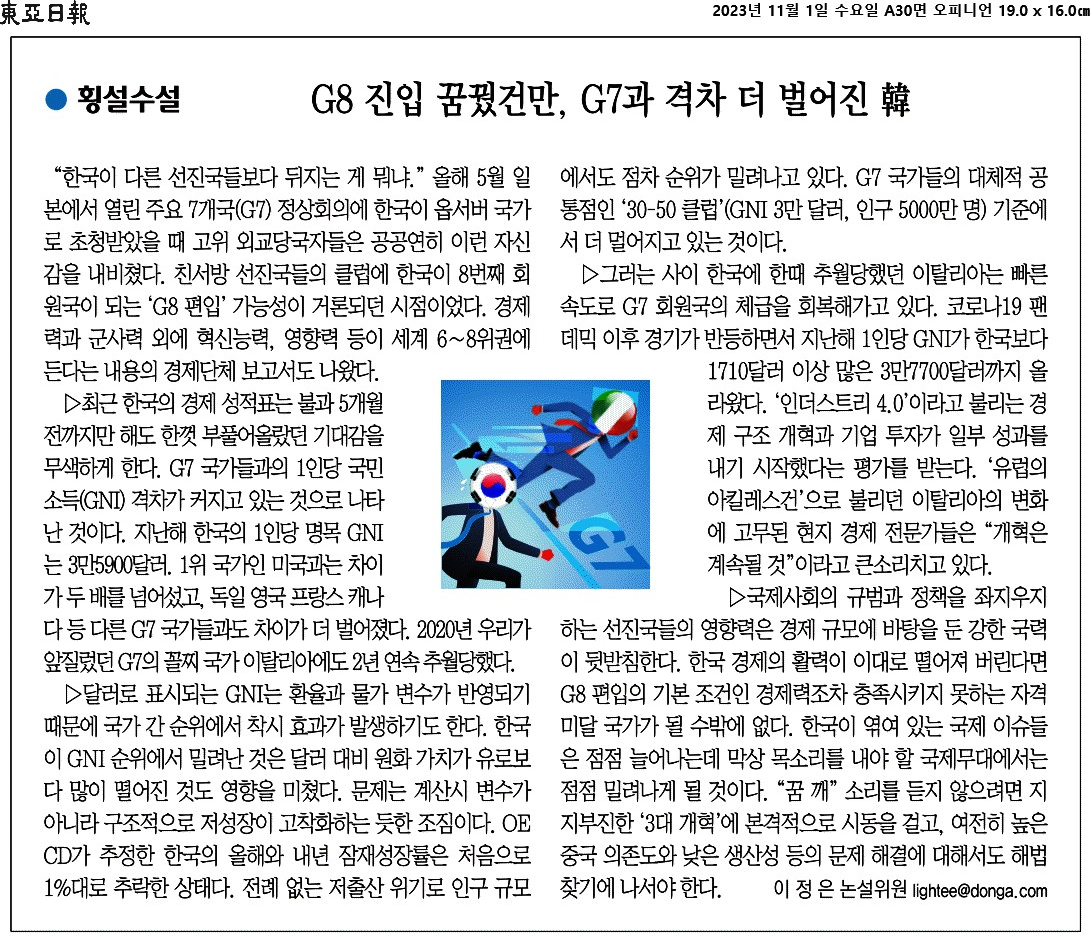 ① 2020년 우리가 앞질렀던 G7의 꼴지 국가 이탈리아에도 2년 연속 추월당했다.