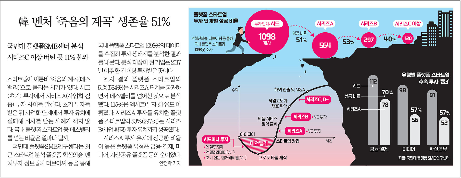 ① 스타트업에 죽음의 계곡(데스밸리)의시기는 시드(초기)투자에서 시리즈A(사업화 검증) 투자 사이를 말한다.