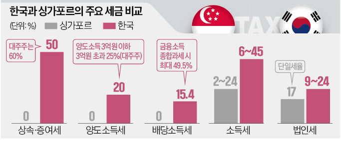 ③ 거액 자산가들에게 싱가포르는 ‘아시아 최고의 세금 천국’이라고 불린다. 싱가포르는 2008년 상속세와 증여세를 없앴다. 최고 60%에 달하는 상속·증여세율로 고민하던 한국 기업인들이 이런 세금 혜택을 들으면 솔깃할 수밖에 없다.
