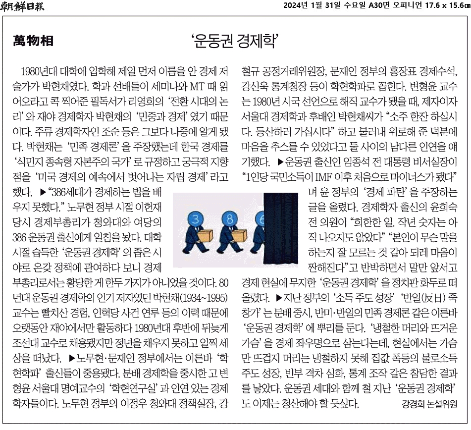 ③ “386 세대가 경제하는 법을 배우지 못했다.” 노무현 정부 시절 이헌재 당시 경제부총리가 청와대와 여당의 386 운동권 출신에게 일침을 놨다.