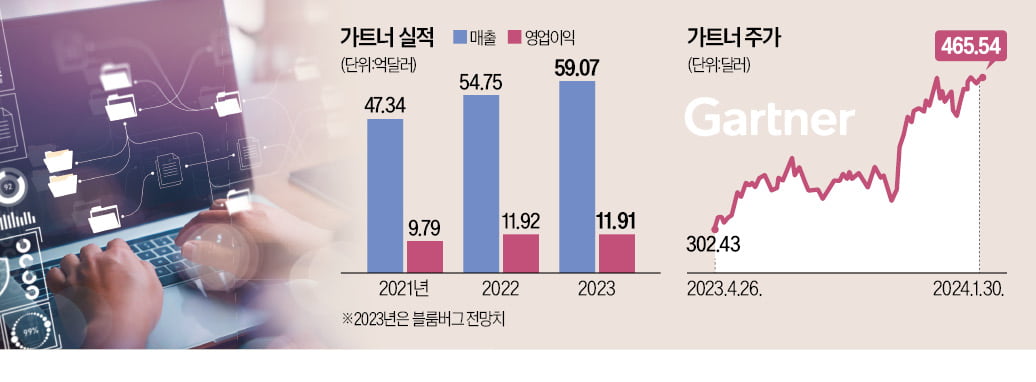 ① 인공지능(AI) 열풍 속에 정보기술(IT) 전문 리서치업체 가트너가 숨은 수혜주로 주목받고 있다. AI 확산에 따라 IT 정보에 대한 수요가 꾸준히 증가하고 있어서다.