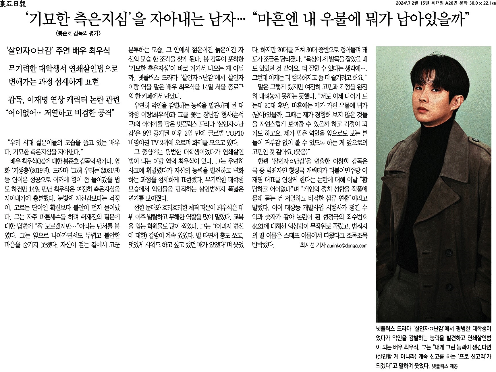② 영화 ‘기생충’(2019년), 드라마 ‘그해 우리는’(2021년) 등 연이은 성공으로 어깨에 힘이 좀 들어갔을 법도 하건만 14일 만난 최우식은 여전히 측은지심을 자아내기에 충분했다.