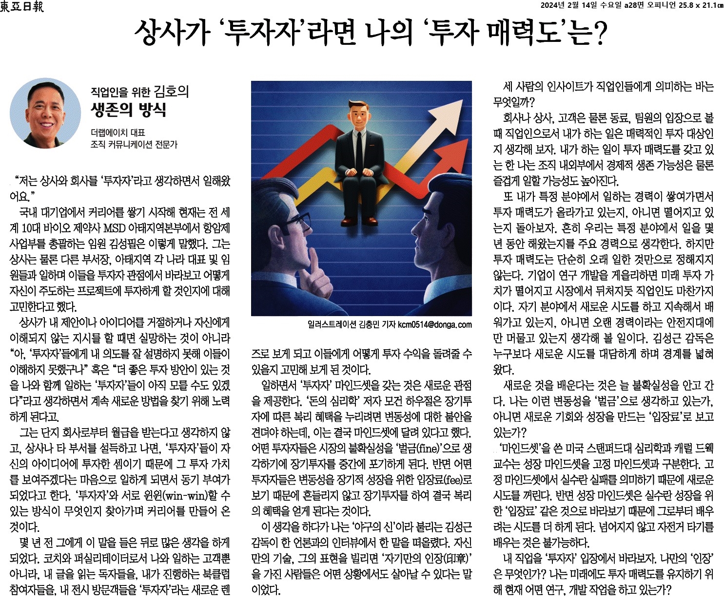 ① “저는 상사와 회사를 ‘투자자’라고 생각하면서 일해왔어요.”