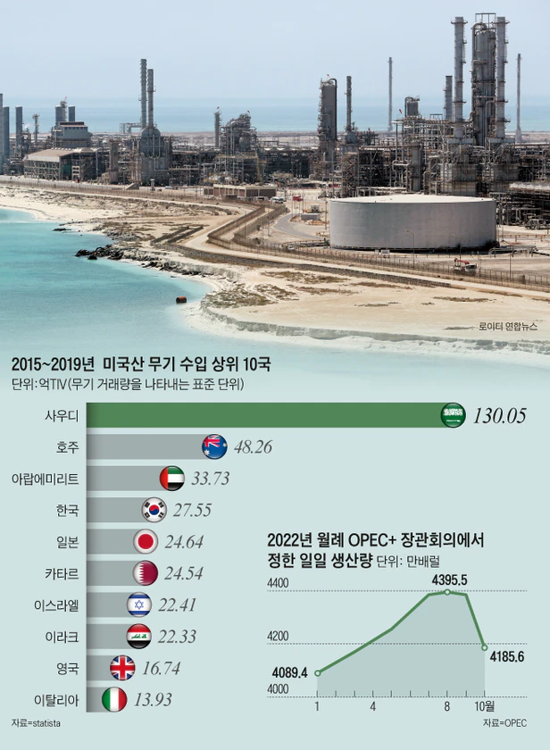 新중동천일야화 무기·돈·이란 바이든과 빈살만이 척질 수 없는 3가지 이유 ① 사우디 무기 73%가 미국산 美도 시장 잃으면 피해 막대 ② 중동 내 미 최대 교역국 사우디, 올 2분기에만 美에 10조