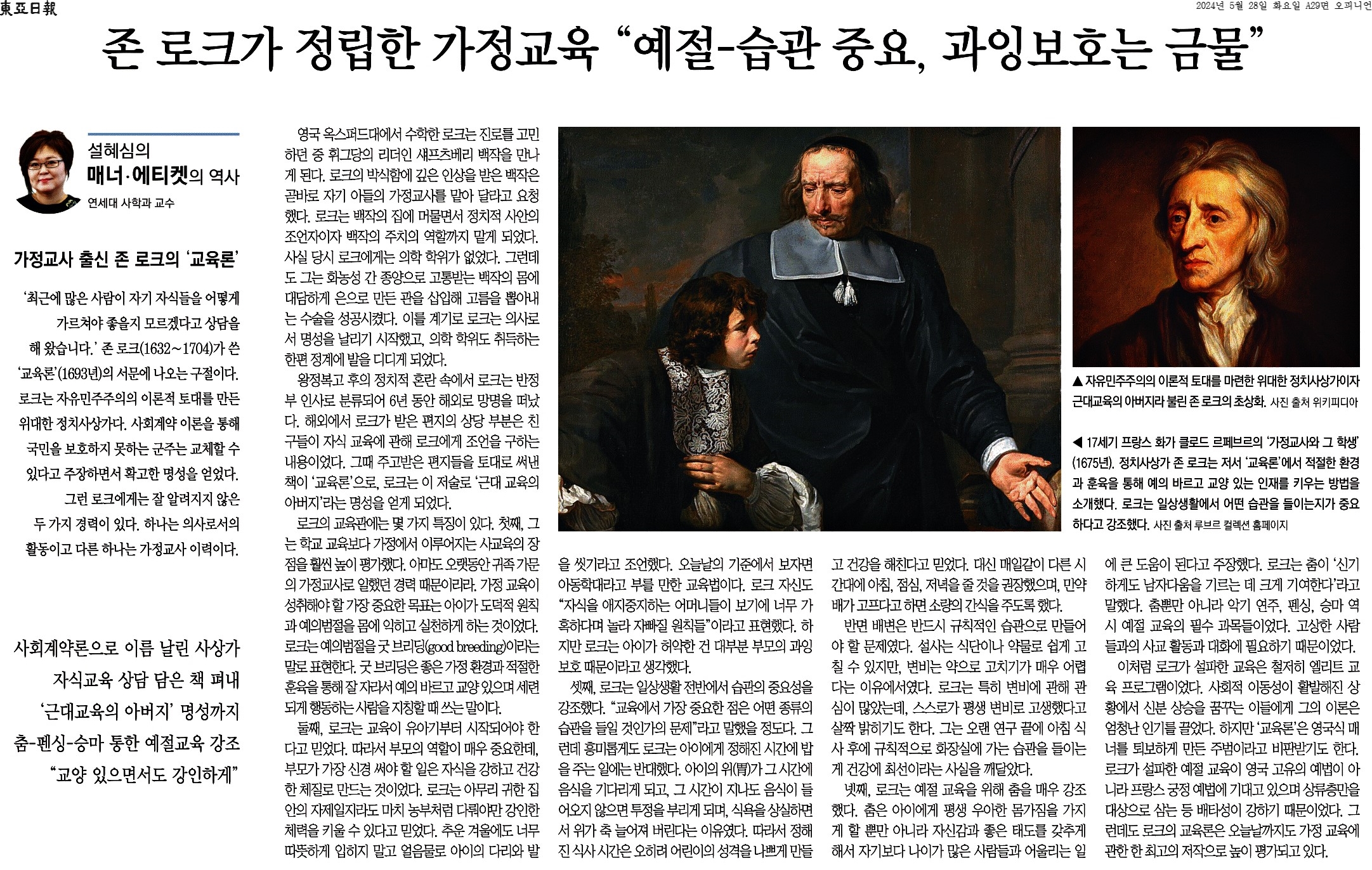 ④ 셋째, 로크는 일상생활 전반에서 습관의 중요성을 강조했다. “교육에서 가장 중요한 점은 어떤 종류의 습관을 들일 것인가의 문제”라고 말했을 정도다.