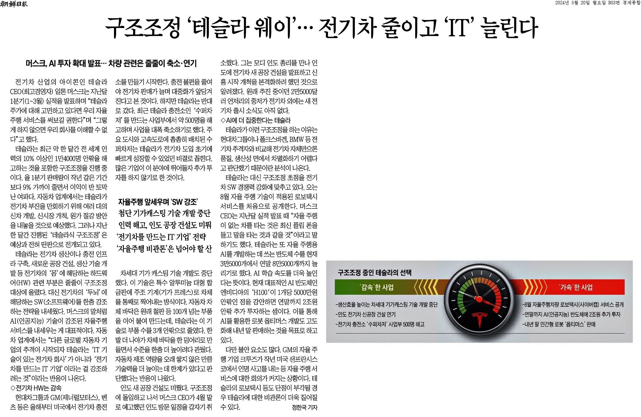 ⑤ 테슬라는 대신 구조조정 초점을 전기차 SW 경쟁력 강화에 맞추고 있다.