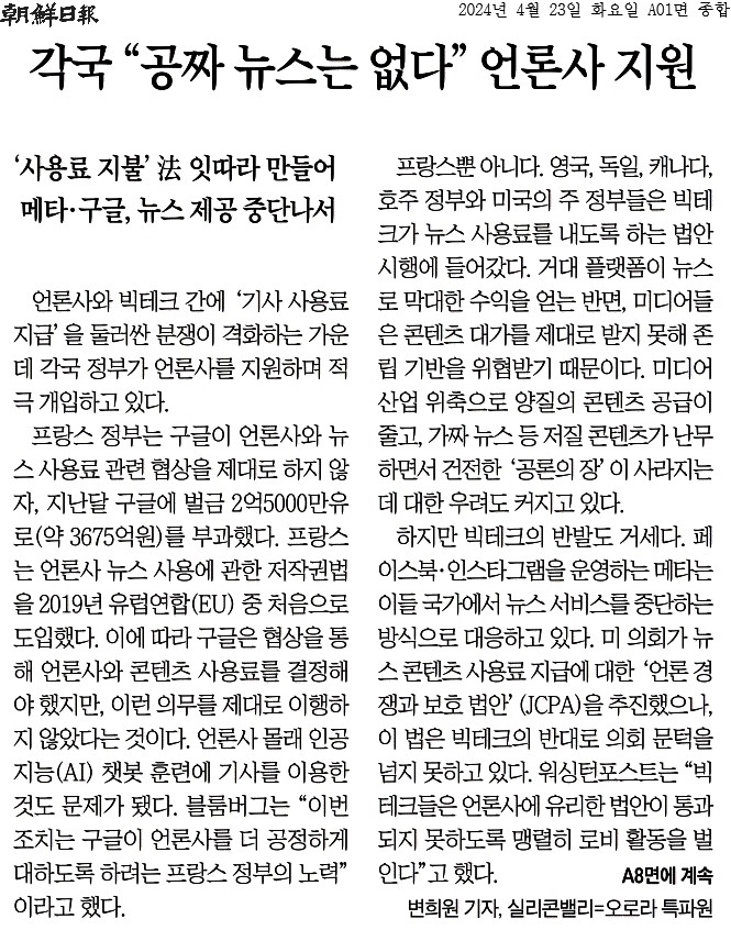 | 뉴스 사용료 법안 추진 (0) | 2024.06.09 |