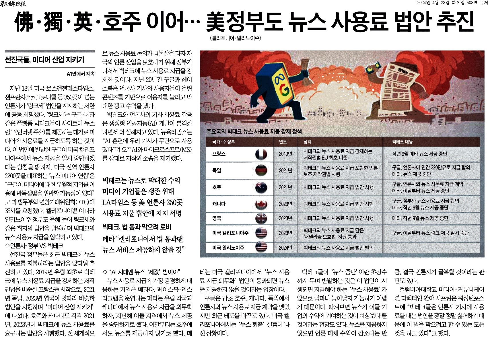② 선진국 정부들은 최근 빅테크에 뉴스 사용료를 지불하라는 법안을 앞다퉈 추진하고 있다.