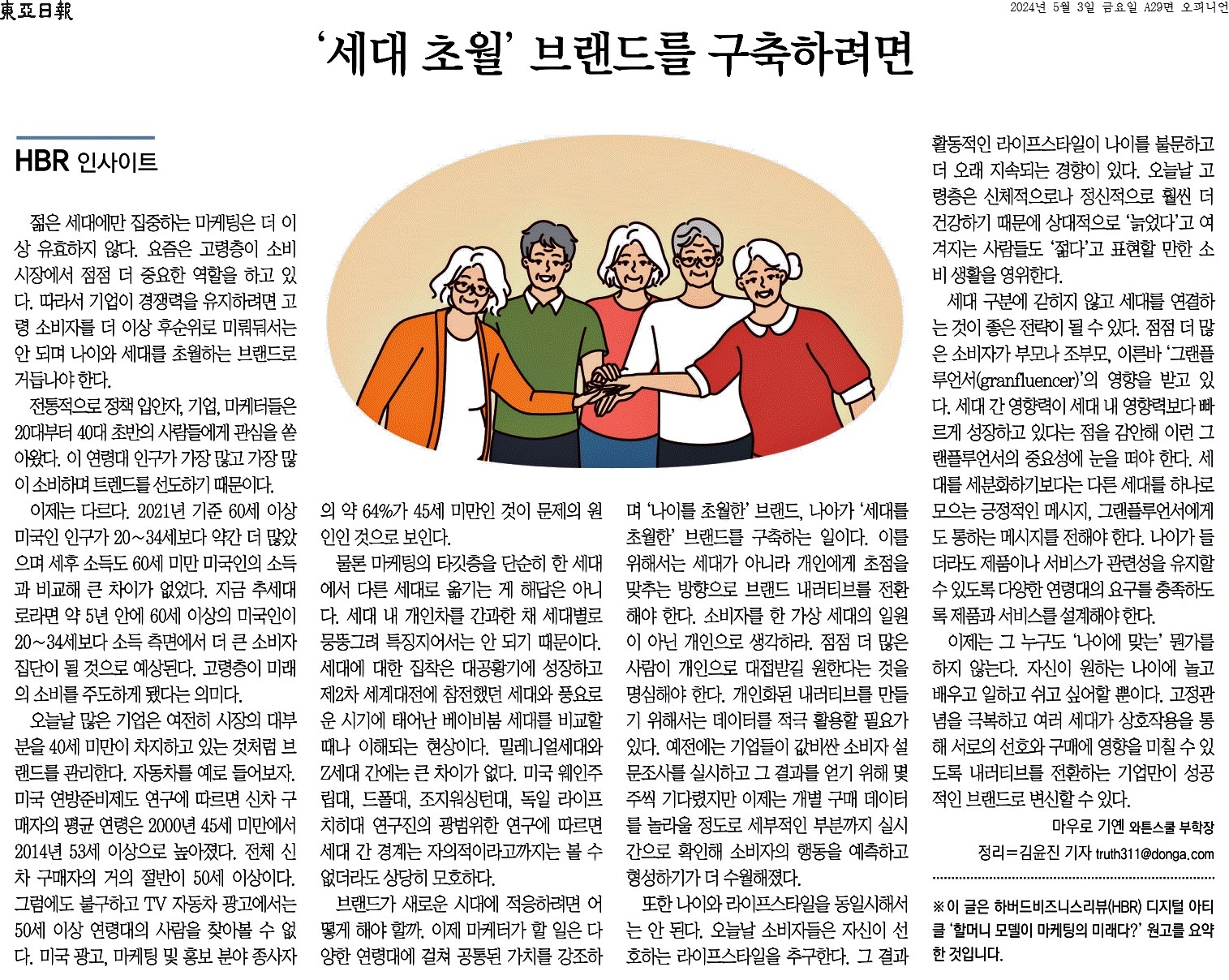 ① 따라서 기업이 경쟁력을 유지하려면 고령 소비자를 더 이상 후순위로 미뤄둬서는 안 되며 나이와 세대를 초월하는 브랜드로 거듭나야 한다.