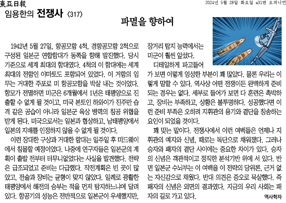 ① 1942년 5월 27일, 항공모함 4척, 경항공모함 2척으로 구성된 일본군 연합함대가 동쪽을 향해 발진했다.