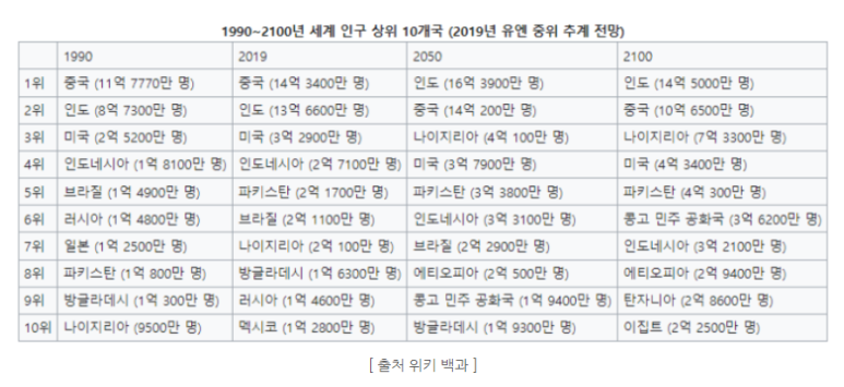 인구와 경제(국력)은 상관관계가 있기 때문에