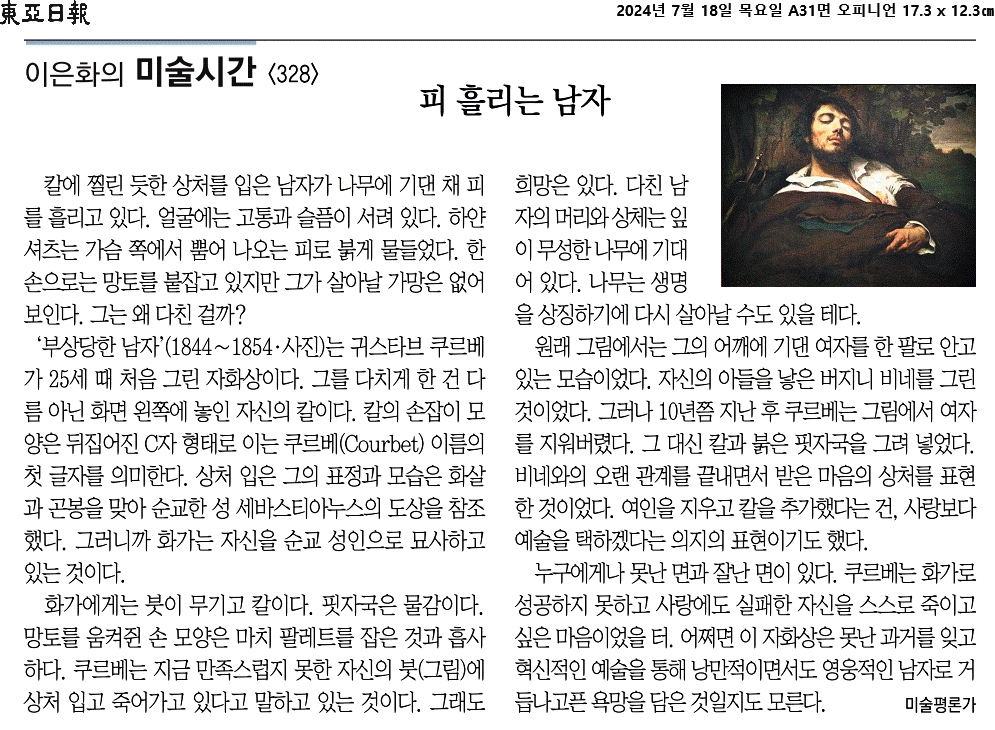 ① ‘부상당한 남자’(1844∼1854·사진)는 귀스타브 쿠르베가 25세 때 처음 그린 자화상이다.