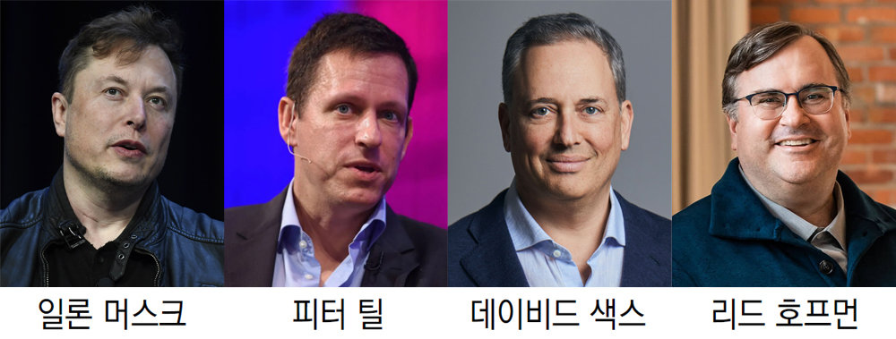 ③ 페이팔을 공동 창업했던 빅테크 거물 겸 유명 벤처투자자 피터 틸, 데이비드 색스 전 페이팔 최고운영책임자(COO) 겸 벤처캐피털 ‘크래프트벤처스’ 대표, 일론 머스크 테슬라 최고경영자(CEO)는 도널드 트럼프 공화당 대선 후보 지지자다.