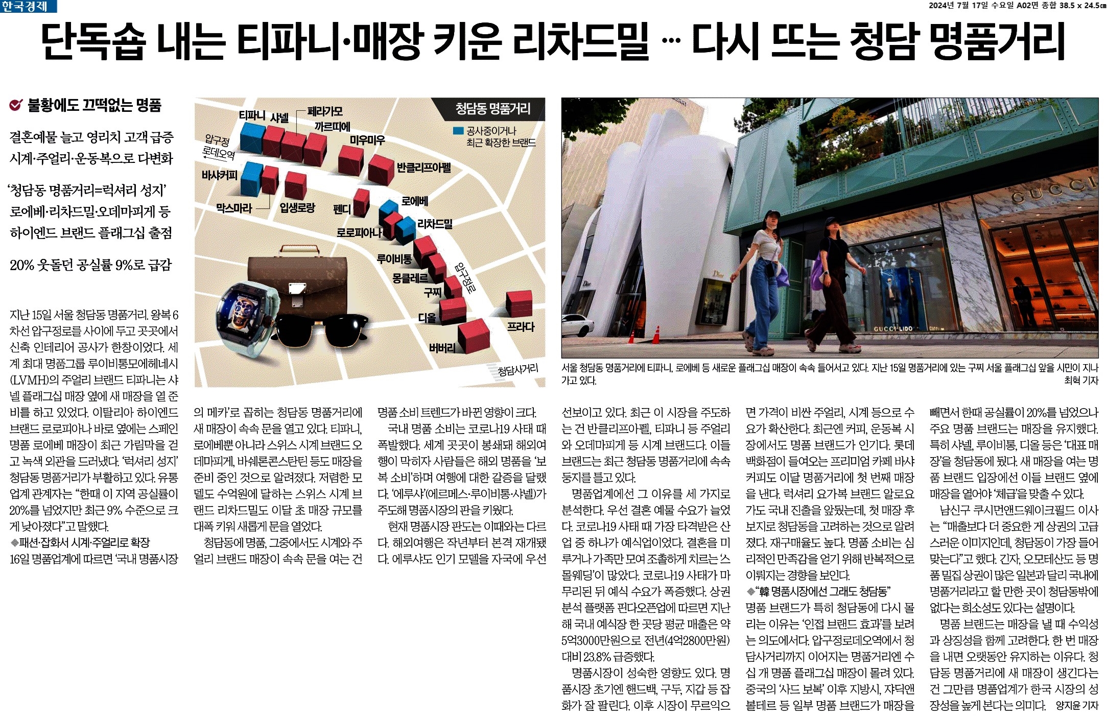 ② 현재 명품시장 판도는 이때와는 다르다. 해외여행은 작년부터 본격 재개됐다. 에루샤도 인기 모델을 자국에 우선 선보이고 있다. 최근 이 시장을 주도하는 건 반클리프아펠, 티파니 등 주얼리와 오데마피게 등 시계 브랜드다. 이들 브랜드는 최근 청담동 명품거리에 속속 둥지를 틀고 있다.