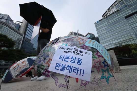 ⑤ 티몬·위메프 피해 소비자들은 PG사의 환불 진행을 요구하며 전날부터 서울 대한상공회의소 인근에서 릴레이 우산 시위를 진행하고 있다.
