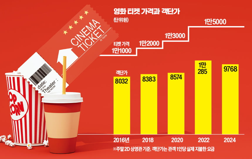 ② 그러나 영화 티켓을 정가에 사는 관객은 많지 않다. 영화진흥위원회가 지난 7월 발표한 ‘영화산업 결산’ 보고서를 보면 올해 상반기 국내 영화관의 객단가는 9768원이었다. 티켓 정가는 1만원대 중반이지만, 관객들은 각종 할인 제도를 활용해 평균 1만원이 채 안 되는 돈을 내고 영화를 본다는 뜻이다.