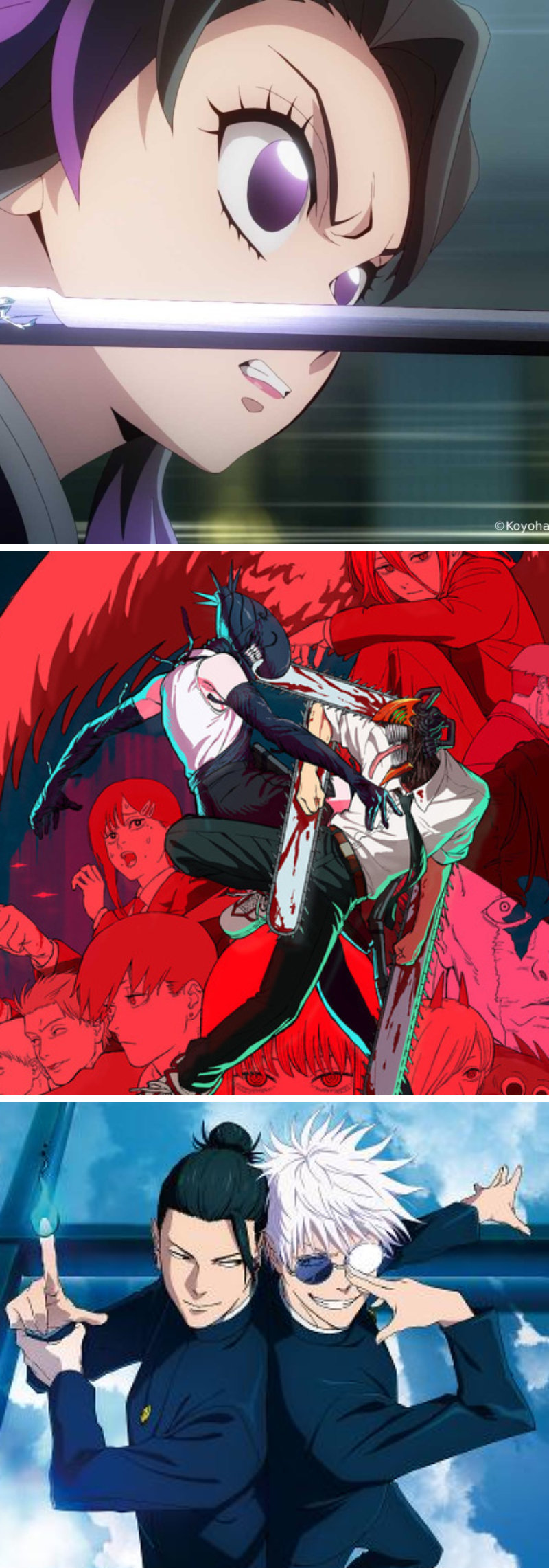 ① 최근 극장가에 자주 들리는 유행어가 하나 있다. ‘귀주톱.’ 최근 일본 소년만화 삼대장이라 불리는 ‘귀멸의 칼날’과 ‘주술회전’, ‘체인소(전기톱) 맨’의 앞글자를 따 만든 신조어다. 이 세 작품은 올해 영화로도 선보이며 일본은 물론 한국에서도 강렬한 존재감을 과시하고 있다. 종이만화부터 시작된 압도적 팬덤이 극장으로 이어지고 있는 셈이다. ② 흥행 성적만 봐도, 올가을 일본 애니메이션의 공세가 엄청나다. 우선 극장판 ‘귀멸의 칼날: 무한성편’은 올해 국내 개봉한 영화 전체 흥행 2위를 달리고 있다. 26일 기준 누적 관객 수 551만 명으로, 1위 ‘좀비딸’(563만 명)마저 넘어설 기세다. ③ ‘귀주톱’의 인기는 한때 명맥이 끊기다시피 했던 ‘소년만화의 세대교체’가 이뤄졌음을 보여준다. 20..